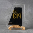 A fragment of a Shahed-136 drone preserved in resin, featuring a personalized name plate. Each piece is unique and may slightly differ from the one shown in the image.